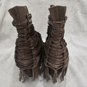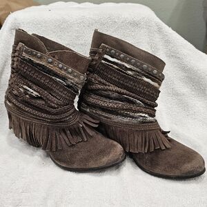 Naughty Monkey Brown Suede Strappy Corset Fringe Boho Hippie Ankle Boots