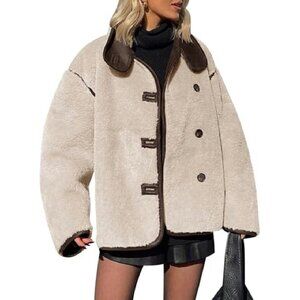 Faux Fur Jacket Women's Winter Coat Button Down Stand Collar Long Sleeve