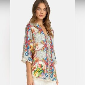 JOHNNY WAS RAYON 3/4 SLEEVE BLOUSE