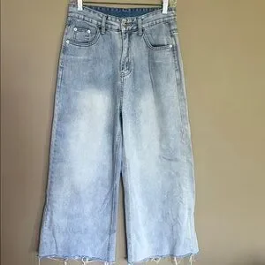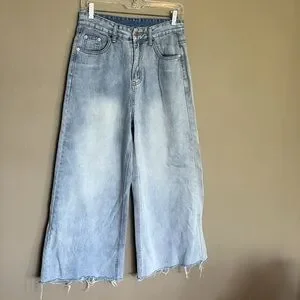 ๐ Trendy & Stylish High-Waisted Faded/Distressed Wide-Leg Jeans- Sz 28