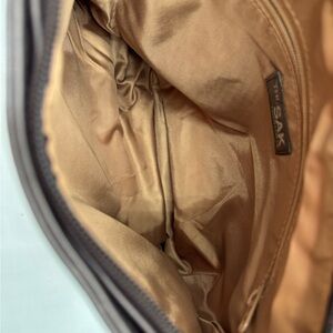 The Sak Brown Woven Shoulder Bag Crochet Hobo Purse Leather Trim