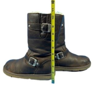 Stylish UGG ankle boots. Rich brown leather. Buckle accents for added flair. Comfortable and durable.