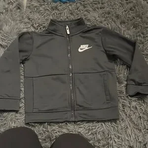 Sleek charcoal jacket with full zip. Features iconic Nike logo. Ideal for everyday wear.