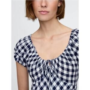 NWT Gap × DÔEN 100% Linen Blue Gingham Midi Dress