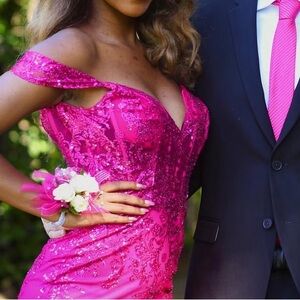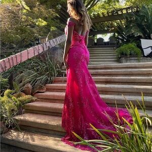 Step into elegance with this stunning pink evening gown. Perfect for special occasions, this dress features a flattering silhouette and exquisite detailing. Perfect prom dress!