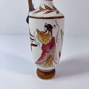 The Union Of Greek Ceramists Urn is a handmade Greek pottery replica that pays tribute to ancient Greek mythology and craftsmanship. This small vase features an Attic White Ground style with hand-painted detailing and an antiquated finish, perfect for adding a touch of history and artistry to any room. Ideal for collectors or those looking to add a unique piece to their home decor, this urn is a beautiful and meaningful addition to any space. Made in Greece, this piece showcases the rich artistic heritage of Greek ceramics.