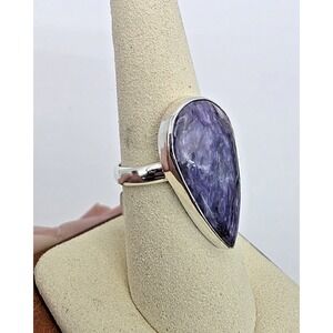 Natural Siberian purple Charoite Ring Sterling Silver 925 Size 8 Teardrop NWT
