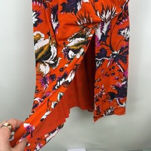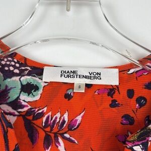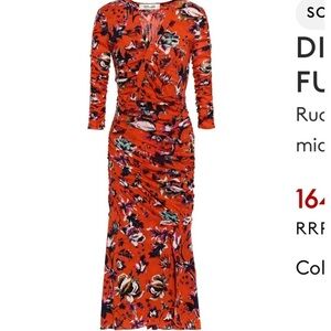 Diane Von Furstenberg Briella Ruched Porcelain Flowers Spicy Orange Dress Small