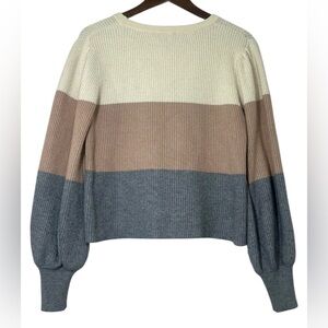 Lulus Trio-Tone Colorblock Ribbed Sweater Size M Long Balloon Sleeve Cozy Winter