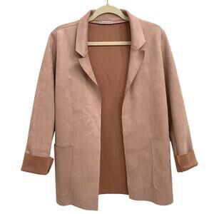 ZARA Faux Suede Pink Preppy Work Ready Feminine Open Blazer Size Women's XS
