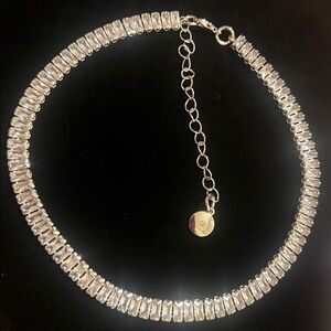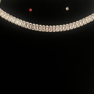 Silver Tone Baguette Rhinestone CZ Choker Necklace 16" Very Bright