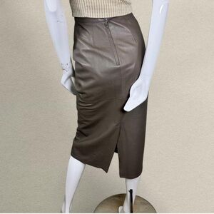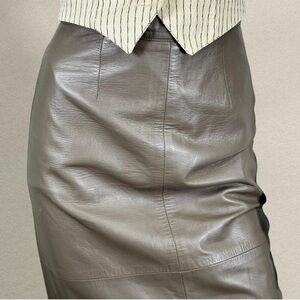 Vintage Vakko Genuine Leather Midi Skirt - Taupe/Mushroom - Made in USA - Size 4