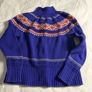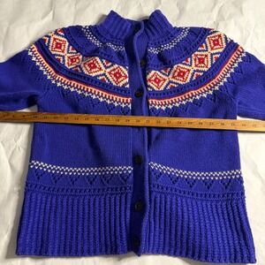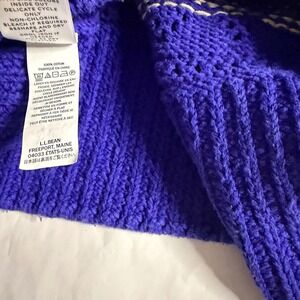 LL Bean Signature Fair Isle Knit Cardigan Blue Geometric Pattern Women L Cottage