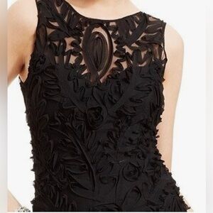 JS Collections Black Chiffon Soutache Mermaid Gown w Sheer Top, V back, Size 4