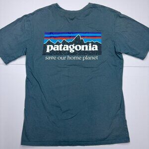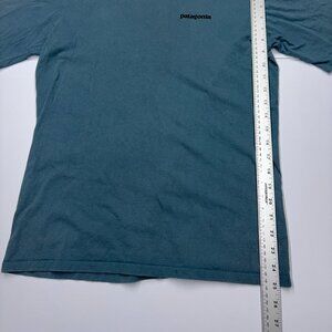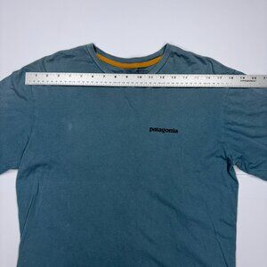 The product is a Patagonia Men's P-6 Mission Organic T-shirt in blue, size small. This regular fit T-shirt is made by the well-known brand Patagonia, known for their sustainable and high-quality clothing. The blue color adds a versatile and classic touch to the design, making it suitable for various casual occasions. Made with organic materials, this T-shirt is a great choice for those looking for eco-friendly and comfortable clothing options.