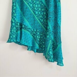 Worthington Petite Blue/Teal Floral Asymmetrical Paisley Ruffled Skirt 10P