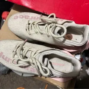Stylish Adidas sneakers in pink and tan. Perfect for active people. Comfortable and durable design.