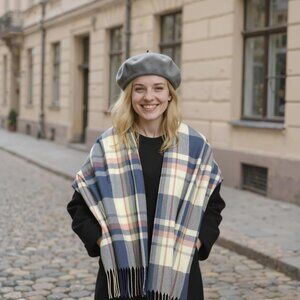 Women's Navy Beige Red Scarf Fashion Long Plaid Shawls Wraps Big Grid Winter