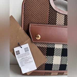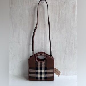 BURBERRY Mini Check Jacquard Pocket Bag- Dark Birch Brown