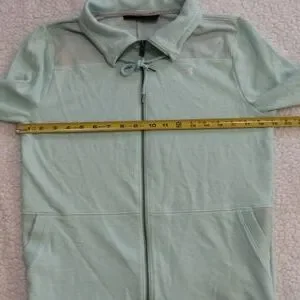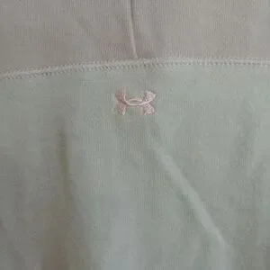 Mint Green Under Armour Full Zip Athletic Jacket with funnel neck and external draw cords. Front pockets. Good pre owned condition