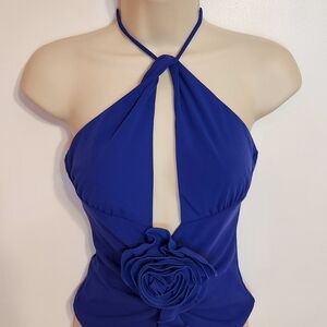 Zara Halter Neck Bodysuit Royal Blue Floral Small