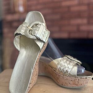 Nike Lab G Series Gold Wedge Sandals Women's Size 8B Braided Cork Heel