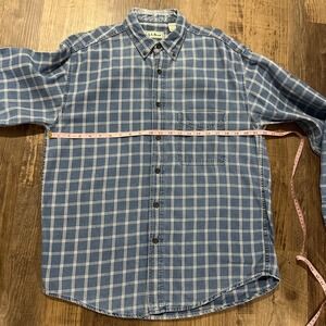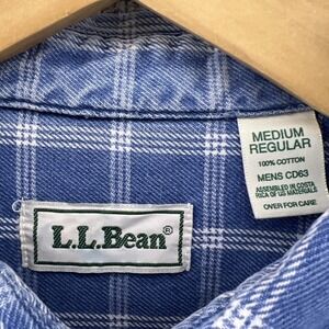 Men's LLBean Size Med Blue White Plaid Heavy Twill Button Down Long Sleeve Shirt