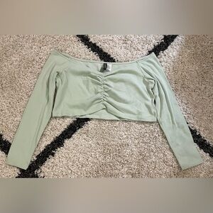 NWT H&M Divided Ruched Off-the-Shoulder Crop Top in Mint Green - XL