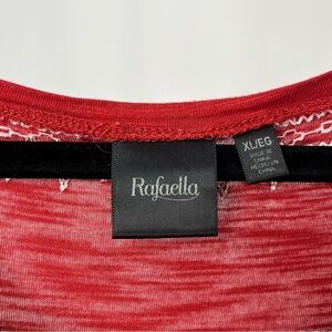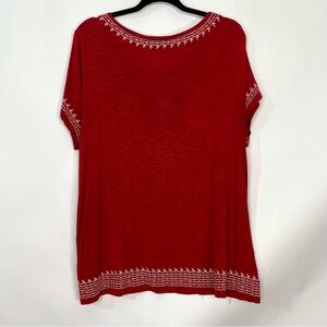 Women’s Rafaella Red Short Sleeve Top White Embroidered Stitching Sz XL