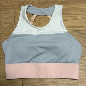 Cleo Harper Sahara bralette in white, blue/grey and pink. Material can be worn as swimwear as well.