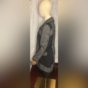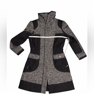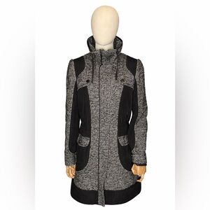 Heine Black & White Tweed Utility Coat | Drawstring Waist Long Jacket Size 8