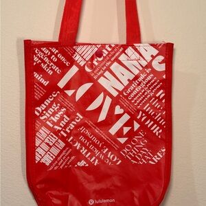 Eye-catching red shopper bag from Lululemon Athletica. Ideal for daily errands and stylish outings. 10 inches across and 11 inches for length. Almost new! Used once in store.