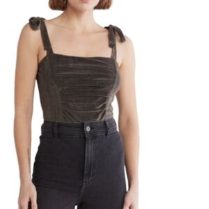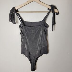 Free People One Haven Velvet Bodysuit Tie Shoulders Earthy Neutral Size XS NWT
