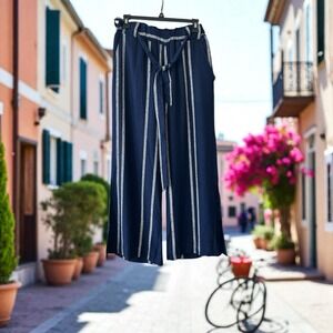 Indigo Rein Pants Women Size Medium Linen Blend Navy Beach Wide Leg Elastic. Condition is Pre-owned - Excellent. Shipped with USPS Ground Advantage.