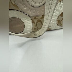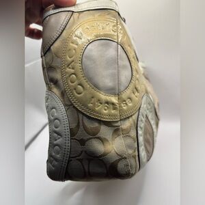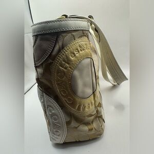 Stylish Coach tote with signature patchwork design. Features beige and cream tones. Perfect for everyday use. excellent condition except for the straps as showing onpics