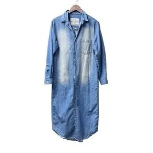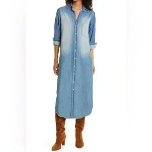 Frank & Eileen Rory Maxi Long Shirtdress Dress Famous Denim Blue Medium