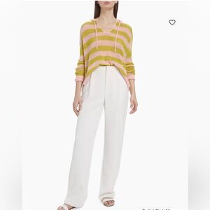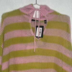 NWT ATM Anthony Thomas Melillo Striped Cashmere Mesh Knit Hoodie Pink Moss Small