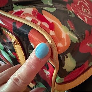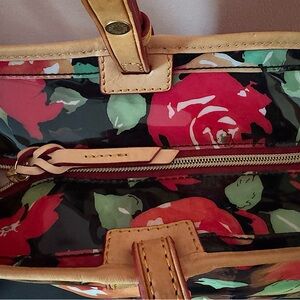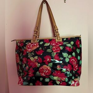 Dooney & Bourke Rose Garden Bloom Black Red PVC Shopping Tote Bag Vintage