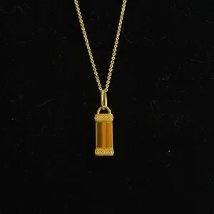 Elegant gold pendant necklace with a sleek design. Perfect for any occasion.