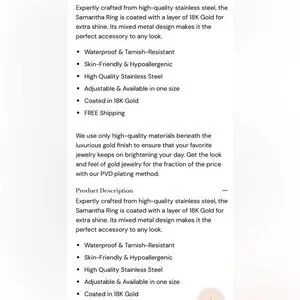 Samantha 18K Gold-Plated Adjustable Ring Retail $58.00