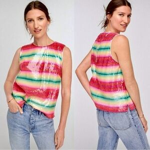 J. Crew Watermelon Stripe Sequin Sleeveless Party Top Size Small