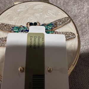14k Gold Natural Round Diamond Solitaire Studs with screw backs &4 prong setting