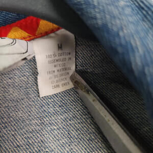 Please see pics for condition. This denim jacket shows good overall condition with vibrant colors and clear graphics. The sequined details on Mickey Mouse remain securely attached.