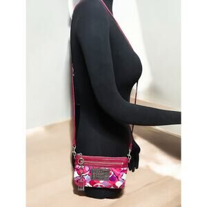 This Y2K 14747 Poppy Kaleidoscope Glam Tote, Crossbody and Wristlet set from 2009 is just fabulous! The set includes the large tote, crossbody (strap can be removed to use as a clutch or pouch) and the small wristlet. Very rare to find the three pieces together and the pink/purple kaleidoscope print is perfect when you want a pop of color! If you love the Coach Poppy glam look from the mid 2000’s, this set is a must have for your collection!