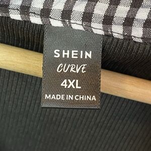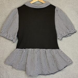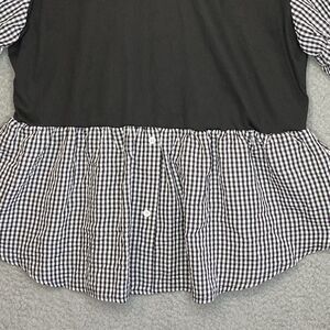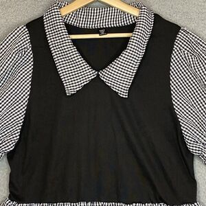 Womens Academia Whimsigoth 4XL Black & White Gingham Plaid Stretch Top Blouse