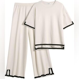 Lounge set travel outfit two piece cream and black sweater set little to no signs of wear. Both pieces are an XL