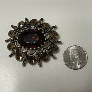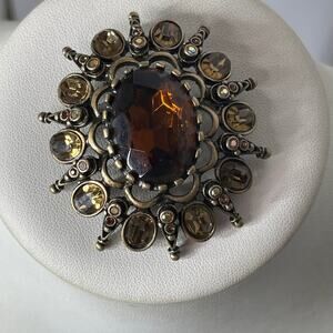 Chico's pin brooch burnished gold tone amber colored signed costume jewelry