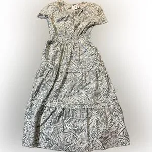 Elegant Green and White Patterned Dress Size Large - NWT
