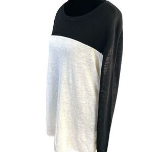 360 Linen Knit Sweater Size Large Black and Cream Color block Lightweight