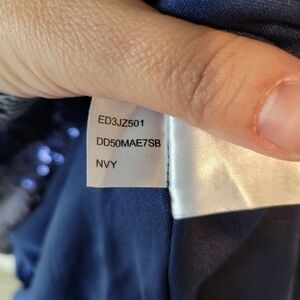 NWT DKNY Long Sleeve Side-Ruched Sequin Gown in Navy Size 6